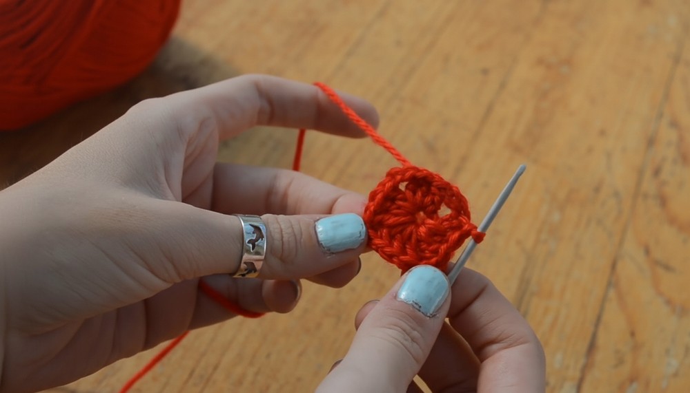 - Ch 4, then join with a sl st into the first chain to create a loop.