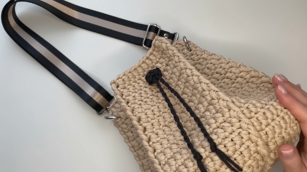 Leather Accents: For a more premium look, substitute the crocheted drawstring and strap with leather furniture.