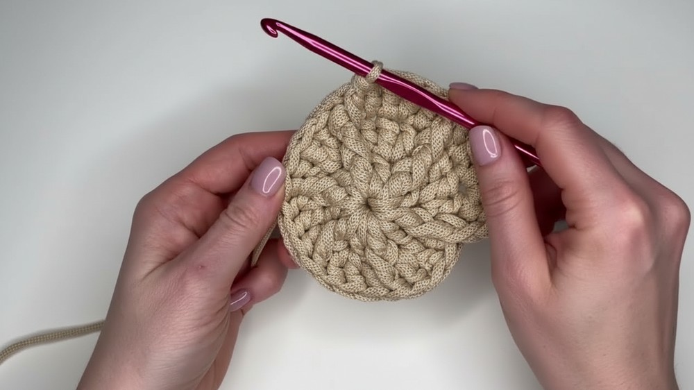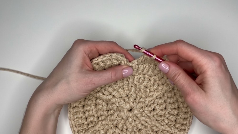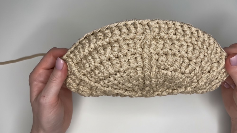 Intermediate. While the bag uses standard stitches, managing the relief columns and the specific “invisible” joining technique requires focus and some prior crochet experience.