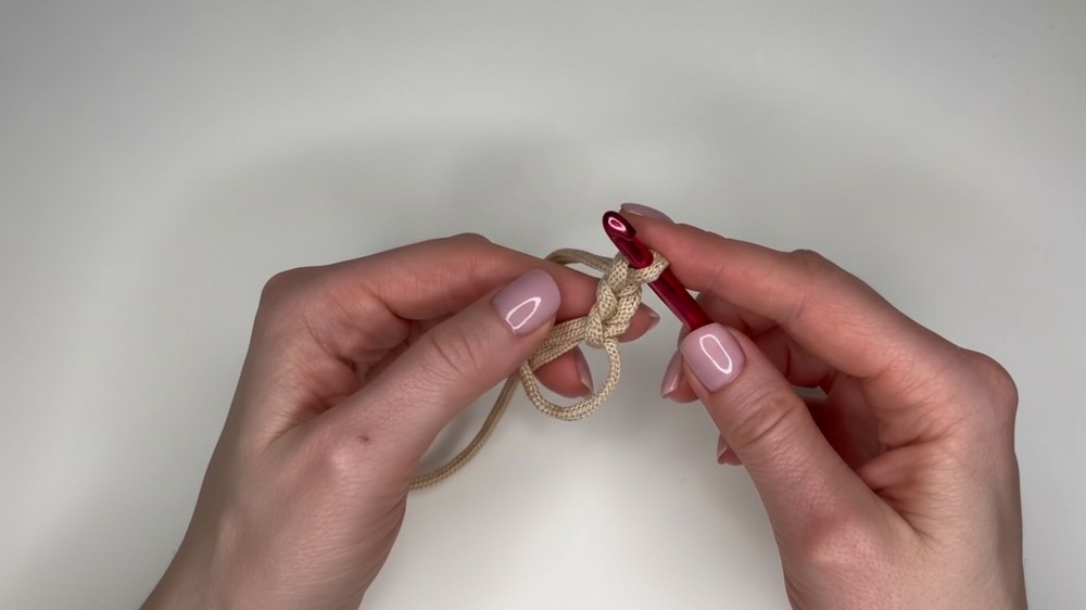Yarn: Approximately 180 meters of 5mm “Caramel” polyester cord (without a core).