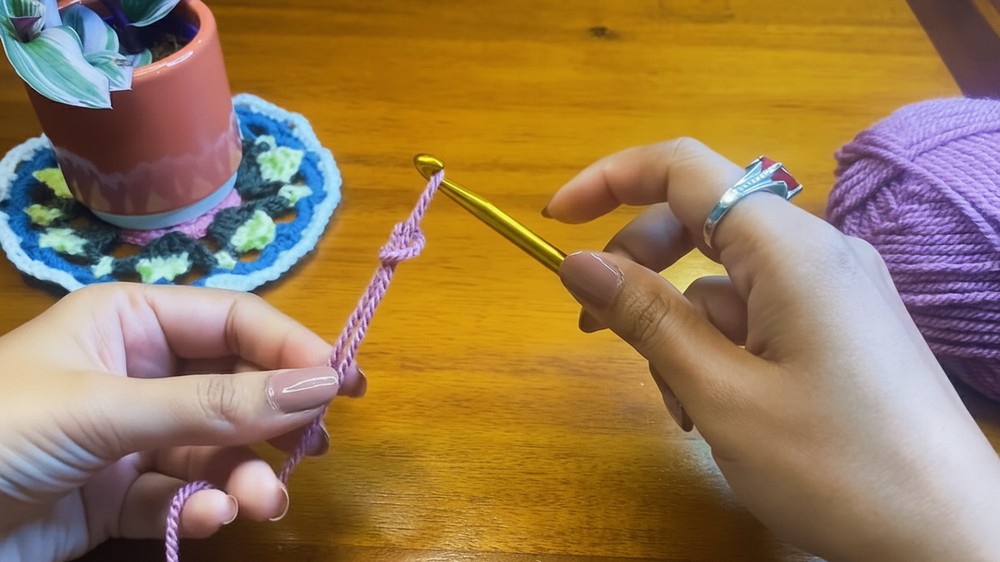 - Add one chain at the end of the foundation chain. Note: This chain does not count as a stitch.