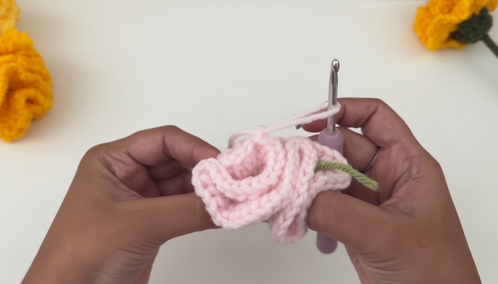 Next, create the petals one by one, layering them around the center to build fullness.