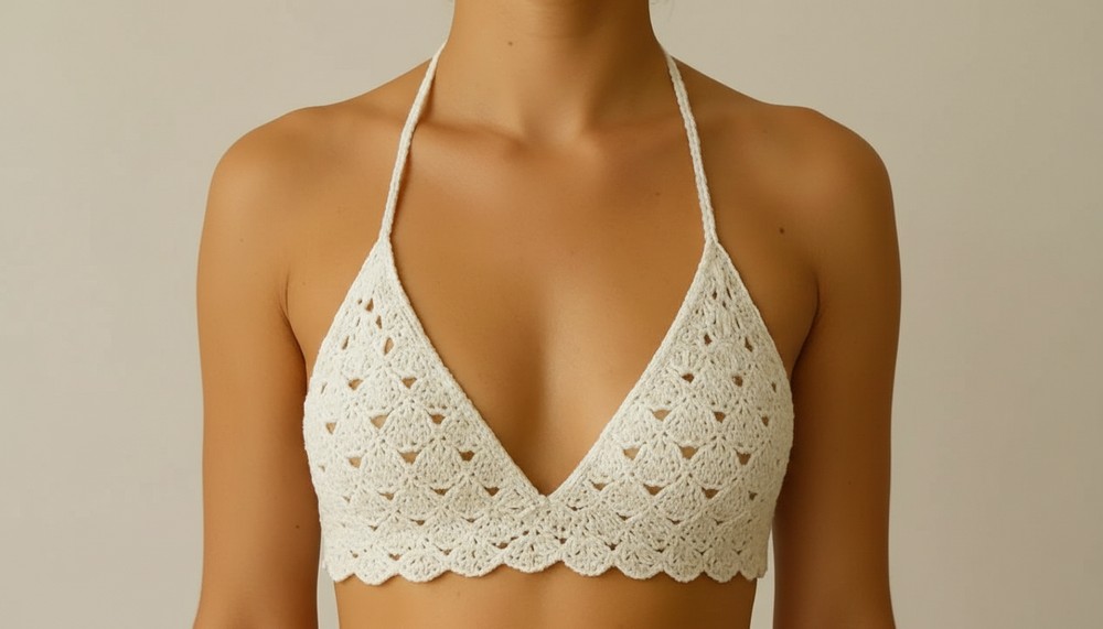Uses: You wear the finished piece as a crochet bikini top, summer top, or bralette. You can customize it by adding a lining or padding (bojo) as desired.