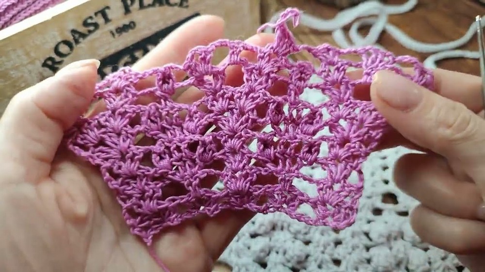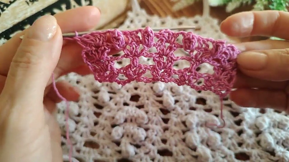 Popcorn Stitches: These create the “grape clusters” that provide a unique 3D texture.