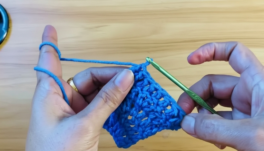 - Create the Button Hole: If you want the button closure, intentionally substitute the center stitch of the second starting row (where you would normally work 3 double crochets) with a single chain stitch. This creates the necessary buttonhole.