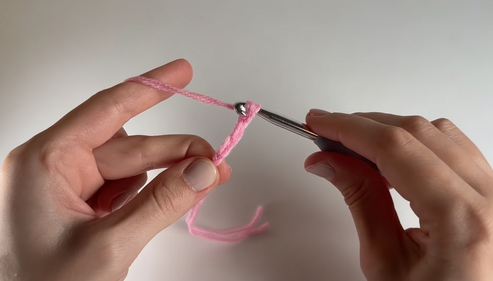 • In the video, the tutor makes 7 chains, but the width can be adjusted as preferred.