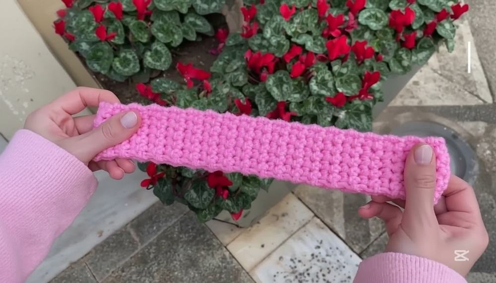 4. Keep crocheting rows until the headband reaches the desired length (for a snug fit around your head).