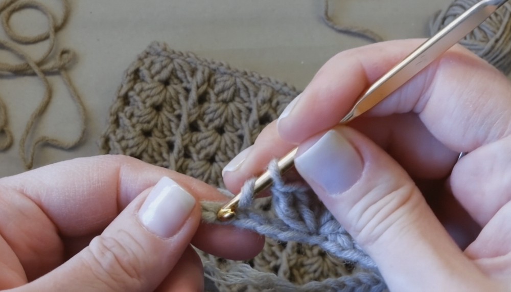 Post Stitch Placement: You consistently crochet the single stitch between the shells as a front post double crochet around the single double crochet from the row before. This stitch always uses the relief technique to stand out.
