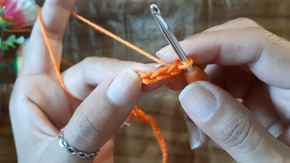 - Begin in the third CH from the hook, working 1 DC into each CH across.