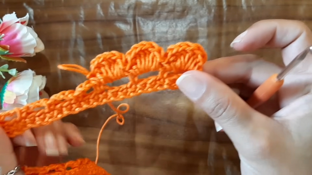 - The completed row will resemble ruffled petals.