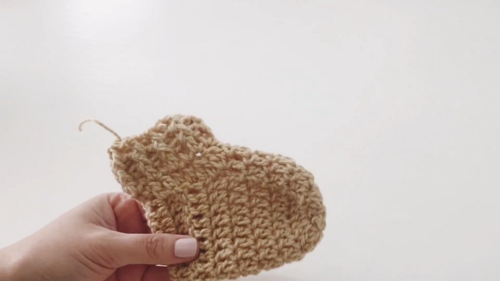 - Fold the heel section in half. Using a sl st, sew the heel together by inserting the hook through the inside loops of stitches on either side.