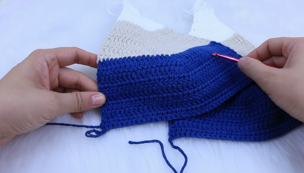 - Continue dc rounds repeating until length from underbust to desired length reached (example: 13 rows ~ 10 cm for size S).