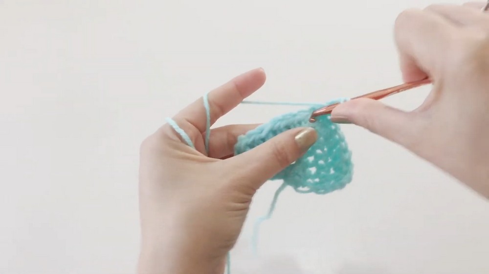 - Starting in the 3rd Ch from the hook, work Hdc into each Ch (10 Hdc total).
