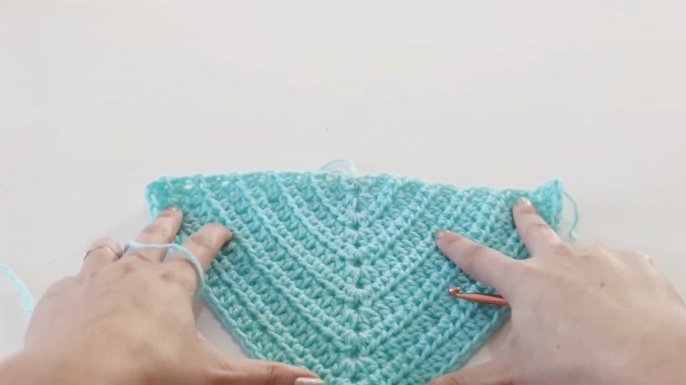 - Check the number of Hdc on each side before the center Ch space. Both sides must have an equal stitch count.