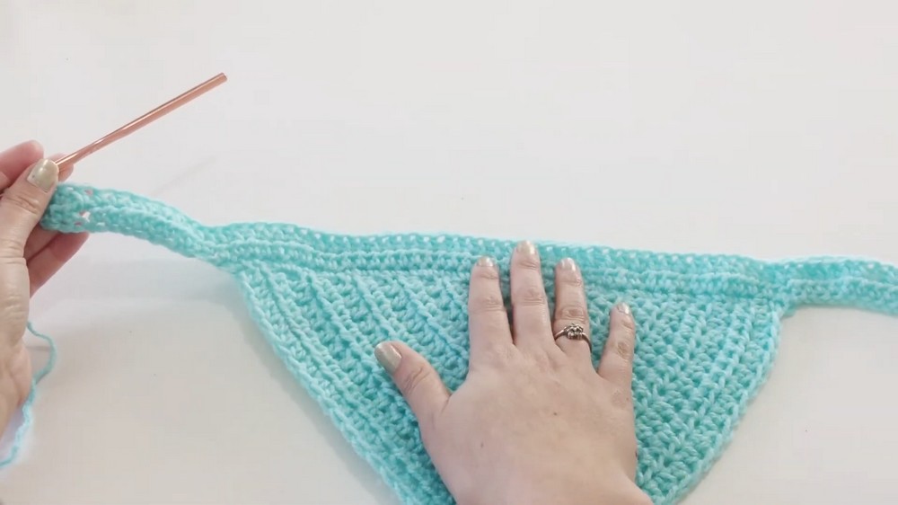 - Continue this pattern until you reach the desired size. For a baby-sized bandana bib, work 11 rows. Adjust as needed for larger sizes.