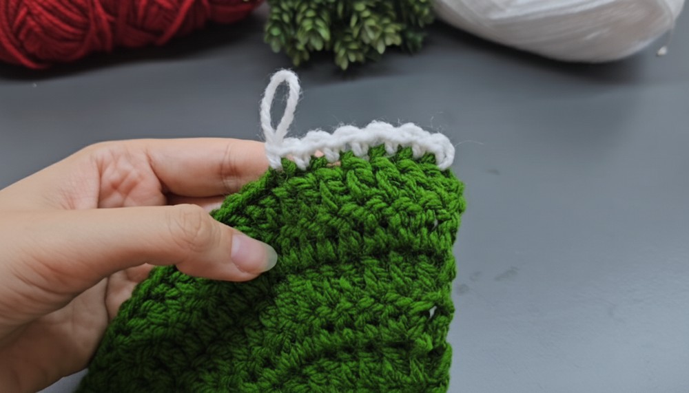 Use a Loop: If you intend to use the tree as an ornament, crochet a chain loop onto the top before you fasten off the green yarn.