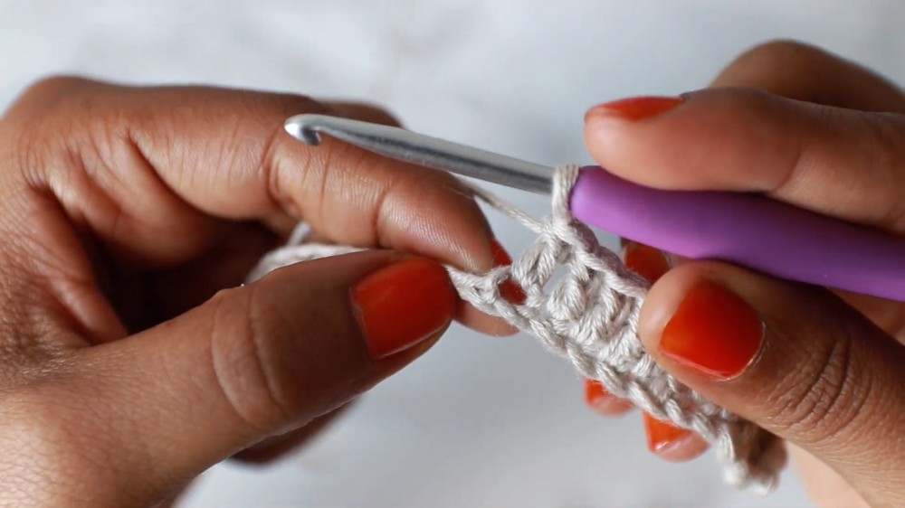- Turn your work and chain 2 (ch 2)—this counts as the first double crochet.