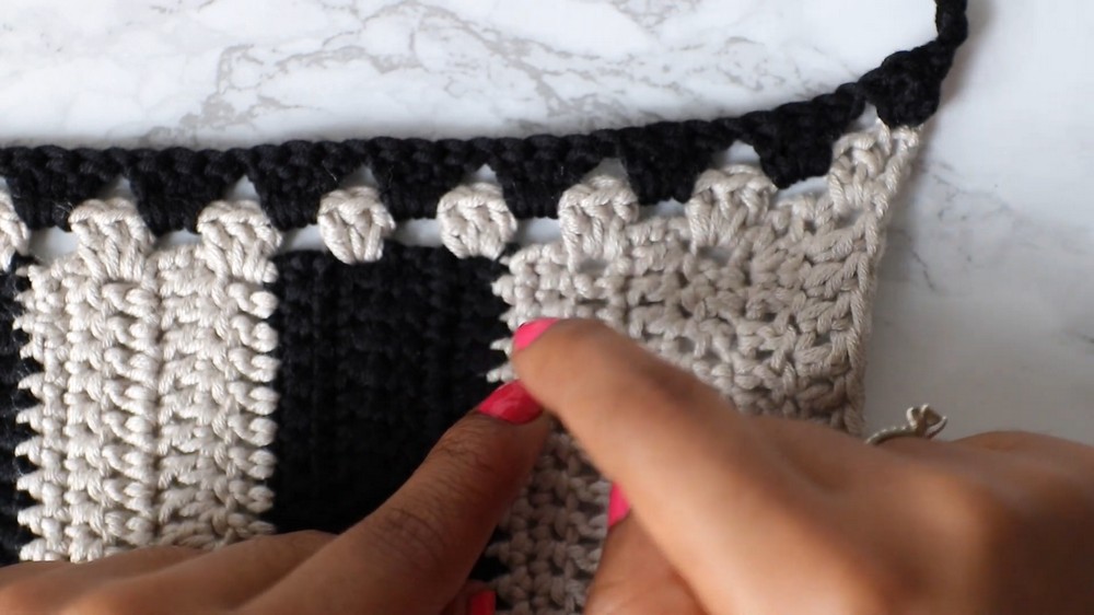 Tip: Count your stitches at the end of each row to avoid mistakes. You should end with 23 dcs.