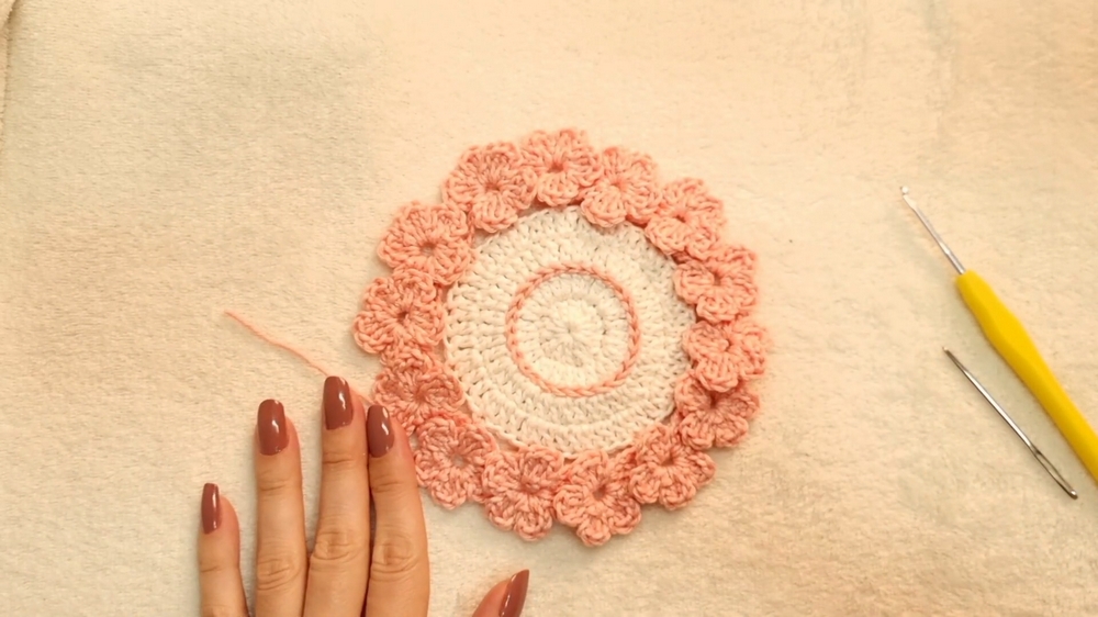 - Yarn Colors: Choose harmonious and contrasting colors for the base and petals to enhance the visual impact of the coaster.