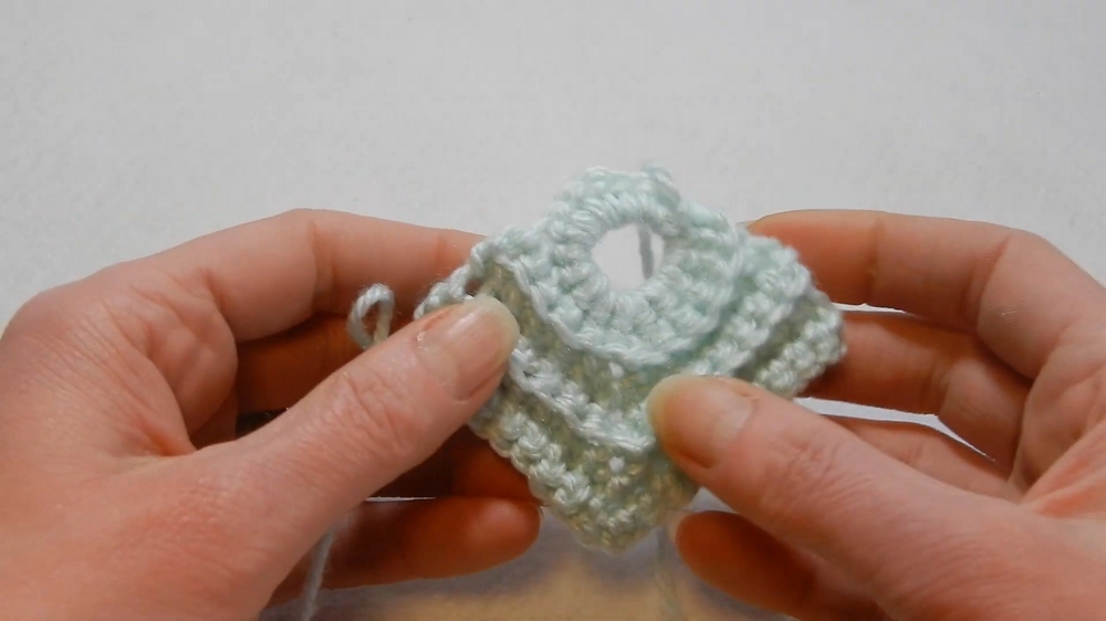 - In every stitch of the base, work 1 sc through the back loop only.