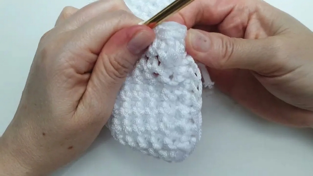 - Work seven rows of single crochet stitches, incorporating additional loops for better stability.