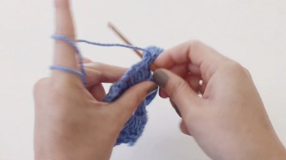 - On the tip, work Dc separated by a chain for smooth stretching.