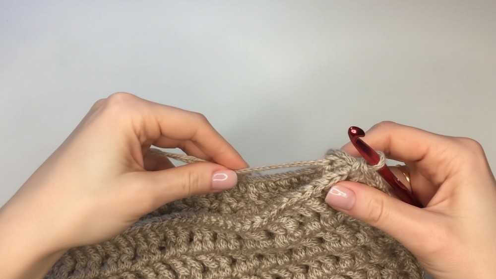 - Work single crochets under the loops of the previous rows, finishing securely.