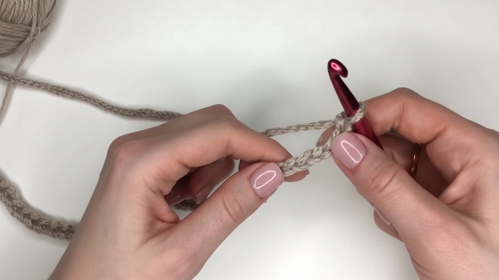 - Yarn over, insert hook into next chain, yarn over, pull through, yarn over, pull through 2 loops, yarn over, pull through last 2 loops — continue to the end of the row.