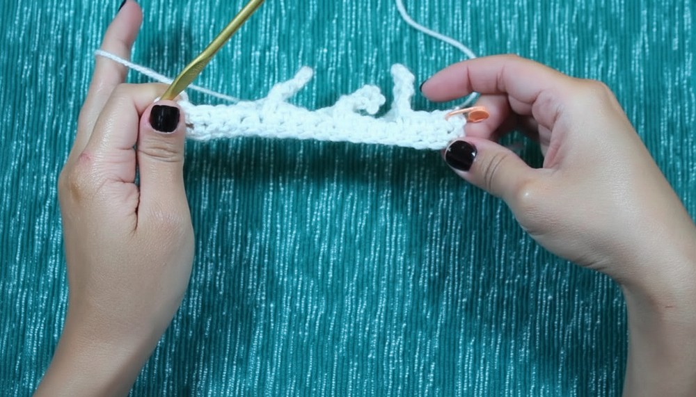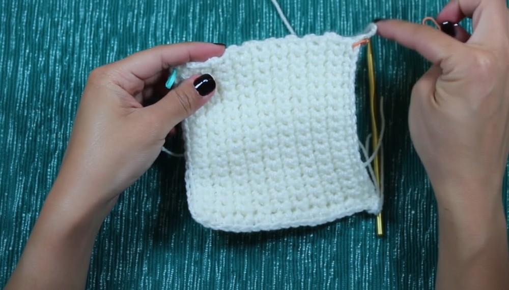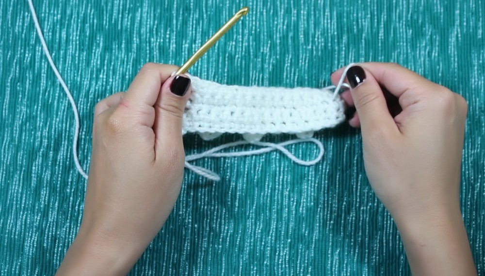 - Chain 1 and turn the fabric to the wrong side. Start single crochet stitches across the row again.