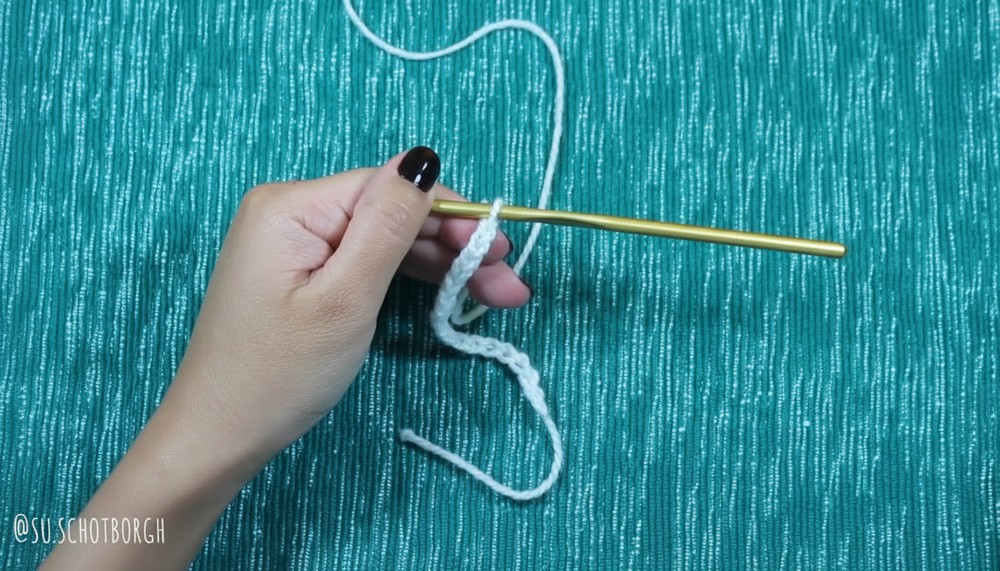 - Insert hook into the second chain from the hook and work 1 sc.