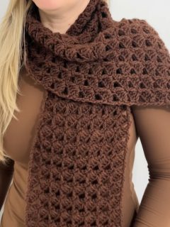 - Begin the shell stitch from the scarf’s edge: