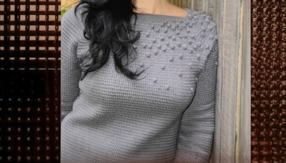 Popcorn/Bobble Stitch (Shishechka): You create the texture by placing these stitches (six double crochets worked into one stitch and then joined) haphazardly throughout the yoke and body for a scattered, randomized design.