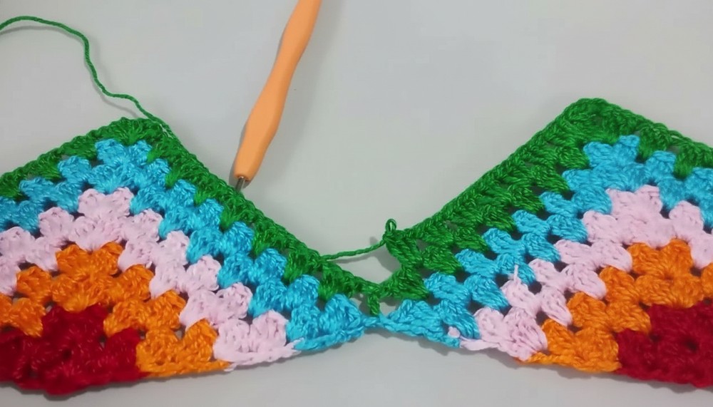 By following this detailed pattern, you can craft a beautiful, colorful crochet cropped top featuring charming fan and block stitch motifs joined seamlessly for a flattering fit. Use this project to creatively repurpose leftover yarn and add a vibrant, hand-made touch to your wardrobe or offerings.