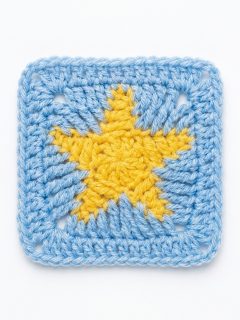 - When completing the last stitch of Row 4, pull the blue yarn through the last two loops instead of the pink.