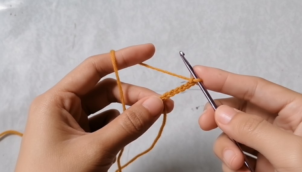 Yarn: Two contrasting colors (Color A for the background, Color B for the cross). The tutor uses light-weight or medium-weight acrylic yarn.