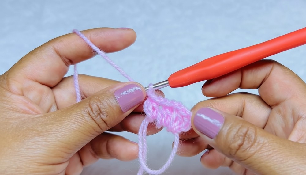 - Yarn over, insert hook into magic circle, pull up a loop, yarn over, pull through two loops. Repeat 2 more times (you’ll have three loops on the hook). Yarn over and pull through all three loops.