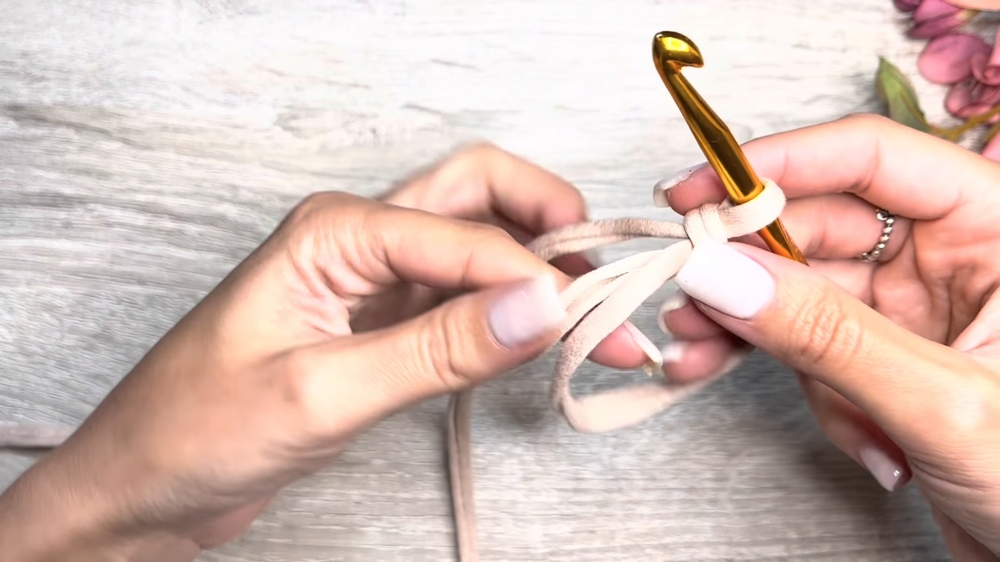 - Tighten the ring by pulling the loose yarn end gradually.