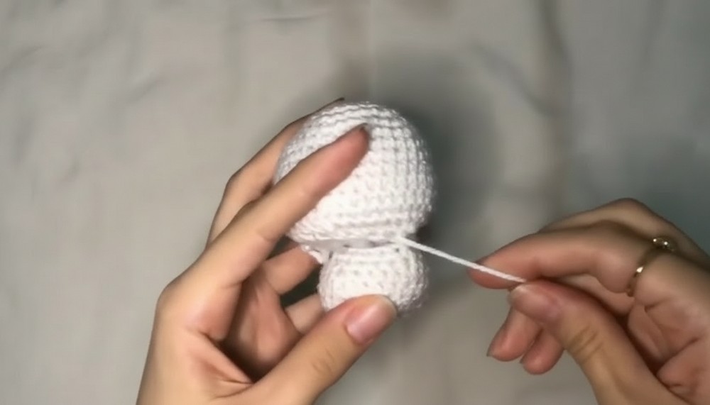Stuffing: The tutor emphasizes stuffing the legs and body firmly as you go, especially the neck area, to prevent the head from wobbling.