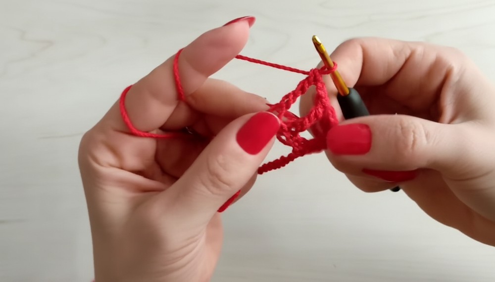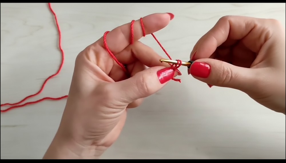 You begin by creating a foundation chain sized to fit around your wrist or lower palm — this sets the base for the net glove.