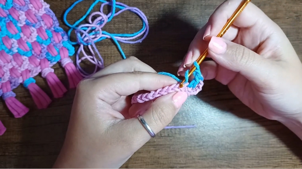 - Create 16 chains followed by 4 chains for turning (3 chains represent double crochets and 1 chain for spacing).