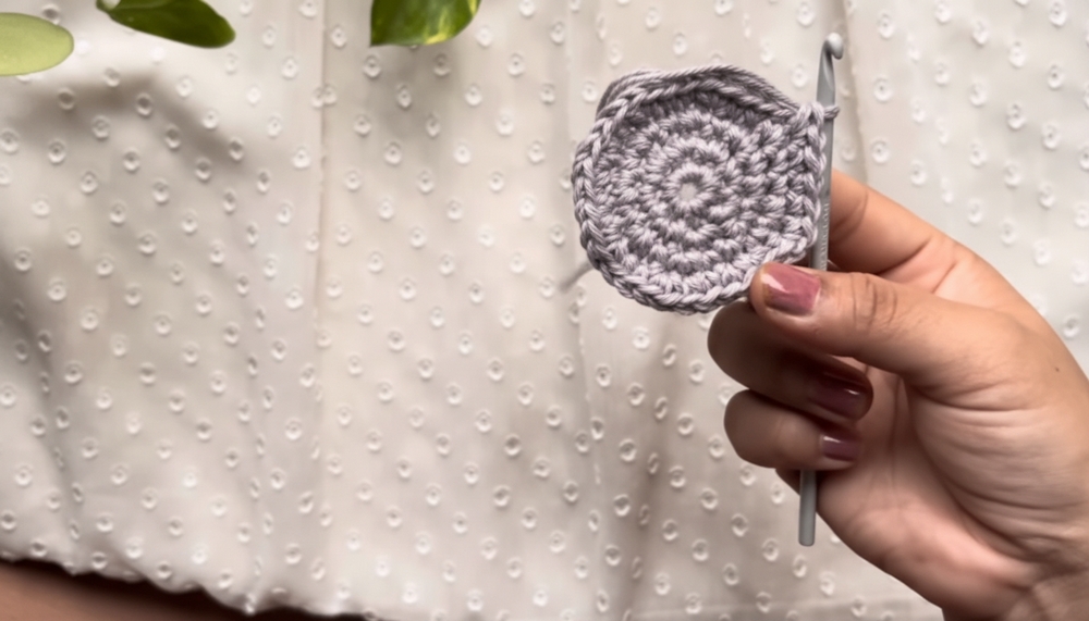 To crochet this hanging plant, you begin by making a tight, secure base that fits the bottom of your chosen pot.