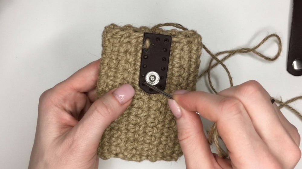 • On the bottom edge (where the two compartments meet), sew with 6 single crochet stitches evenly spaced to close the opening securely.