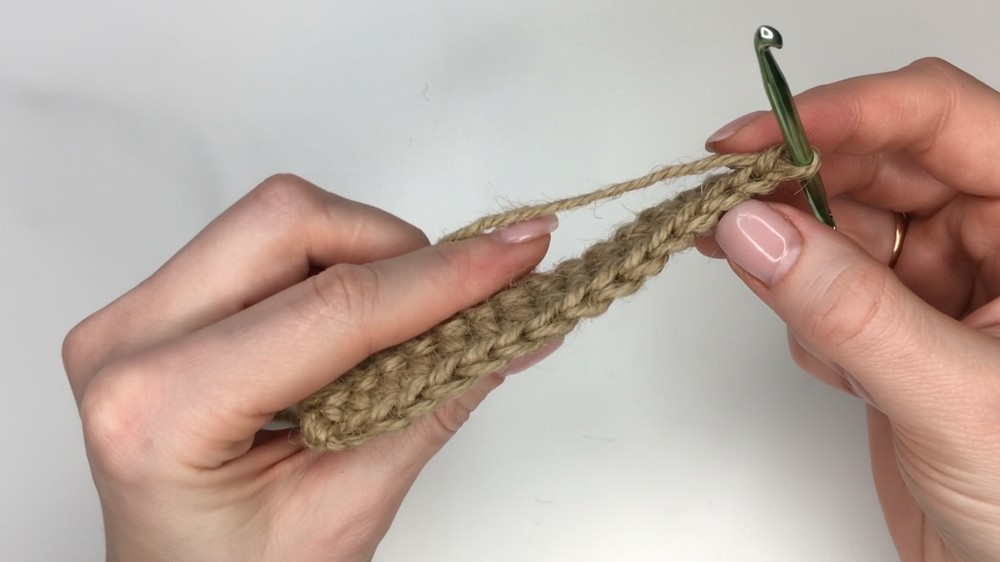 • Work single crochet stitches across the entire row, crocheting into the back loops of the previous row’s stitches (or both loops as preferred).