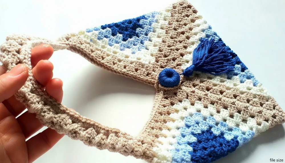 You successfully complete a stylish, multi-motif crochet shoulder bag. The use of simple granny square techniques and the unique three-motif construction makes this a quick and satisfying summer project.