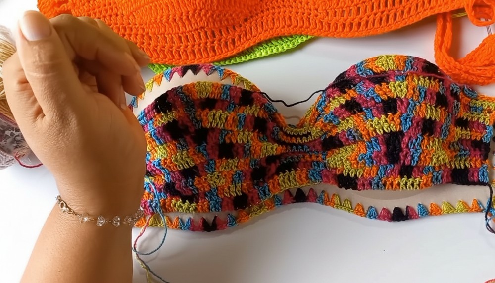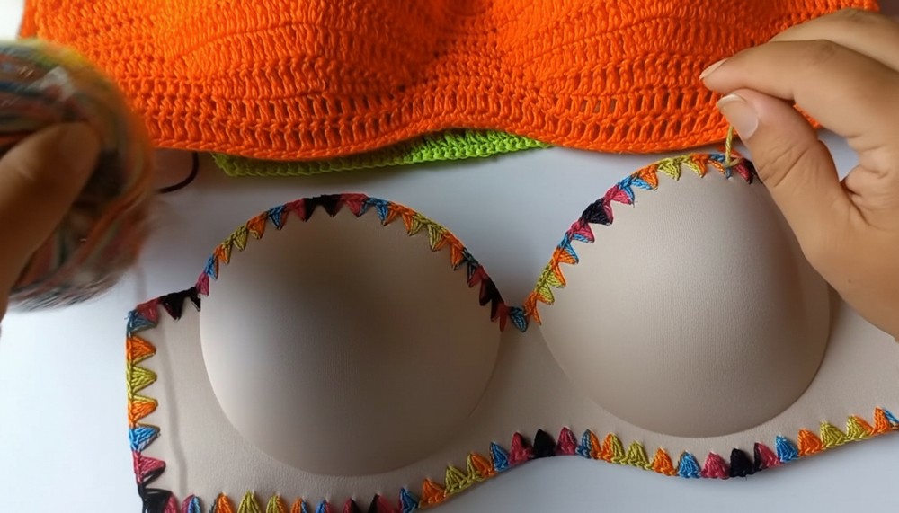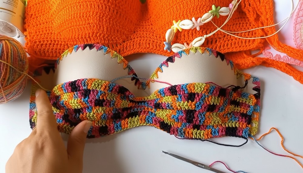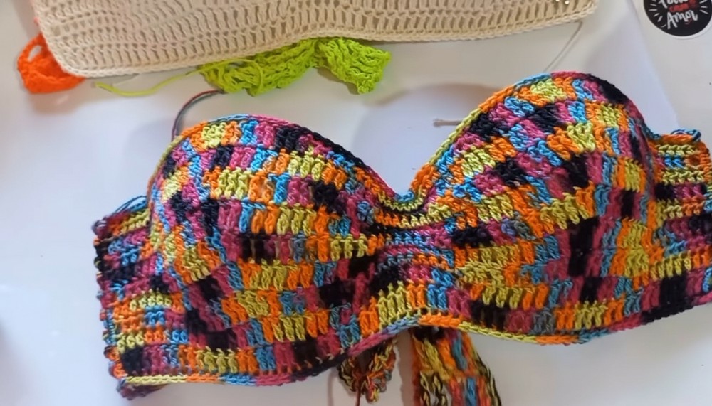Following this detailed sequence, you will craft a durable, comfortable, and customizable crochet bra cup top with sturdy tie straps.