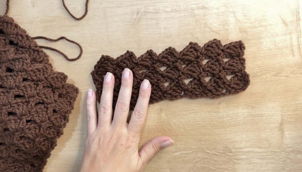 When working Row 2 (Chain Arches), remember you start the row with a Chain 6 to set the correct height and arch. When starting Row 3 (Tilted Shells), you only need a Chain 3. Keeping these two turning counts separate ensures your edges remain straight and even.