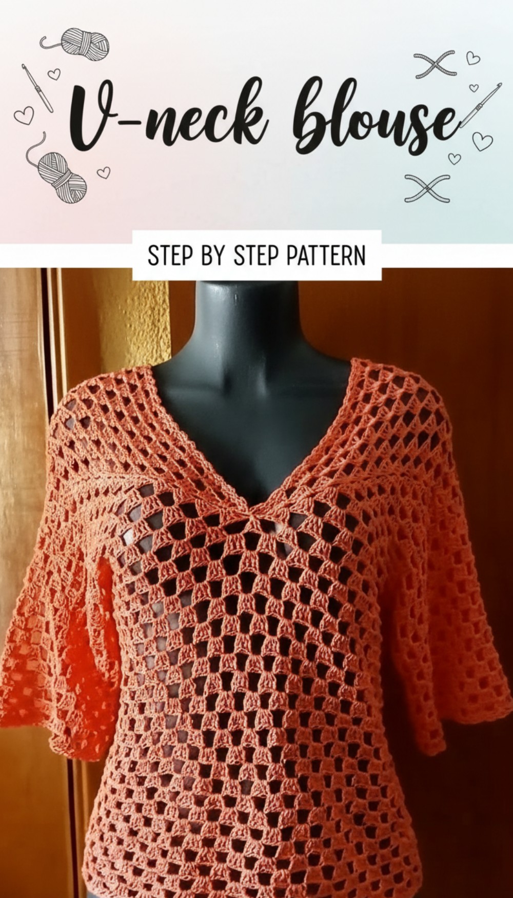 Easy Breezy Crochet V-neck blouse Pattern for Fashion Lovers