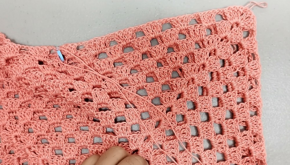 - With right sides in, crochet or sew along the side seams from bottom edge up to armhole openings.
