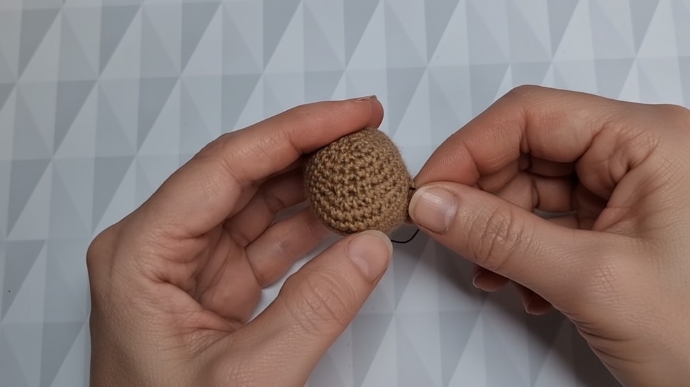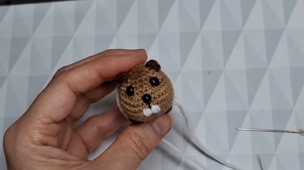 Stuff Tightly and Strategically: Use tweezers to push the fiberfill firmly into the head and body, especially as the closing rounds begin. Ensure you fill out the “cheeks” created by the shaping to maintain the beaver’s rounded face.