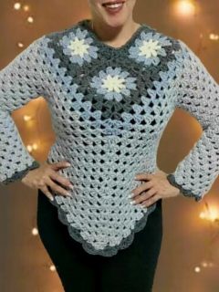 This rounded yoke crochet sweater is a gorgeous, cozy project that blends elegance with comfort. Its adaptable design, involving delicate fans and puff stitches, lets you customize size and sleeve length for your perfect fit.
